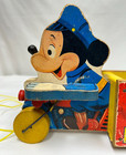 Vintage Fisher Price Wooden Pull Toy Mickey Mouse Safety Patrol 733 Walt Disney