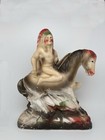 Lot 3 Vtg 1940s Carnival Chalkware Figurines Horses, Indian Rider, Horseshoe