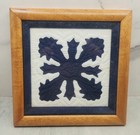 Framed Hawaiian Purple Green Quilt Lot (2) Ulu Breadfruit Design Koa Frame?
