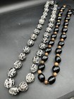 Hawaiian Black Tiger Kukui Nut Lei Luau Boho Bead Necklace Black Brown Lot Two