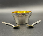 Vintage 1950s Russian Soviet 916 Silver Salt Cellar + 2 Spoons Hallmarked Ussr