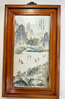 Chinese Framed Hand Painted Porcelain Scenic Landscape Tile Plaque Antique Vtg