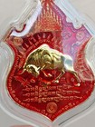 Thai Amulet Wua Thanu Gold Red Bison Bull Yant Pendant Waterproof Casing