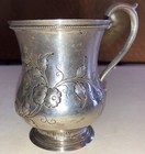 Antique Coin Silver Floral Repousse 1852 Baby Cup, Engraved Bourne