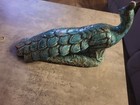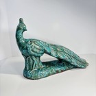 Vintage Ceramic Peacock Mid Century Green Blue Drip Gloss Glaze 8.5" Tall