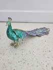 Resin Metal Peacock Figurine Gold Green Rhinestone Jeweled Decor Preowned Good