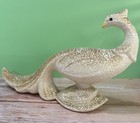 Vintage Mcm Beige Splatterware Ceramic Peacock Figurine