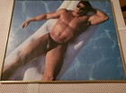 Vintage Beefcake Carnival Prize Art Male Hunk Bikini In Pool Float Fair 15x20"