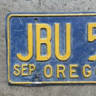 Vintage 1964-1973 Oregon License Plate Jbu 595 Single Plate Blue & Yellow
