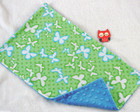 Handcrafted, Flannel Green Butterfly Print & Blue Minky Bubble Baby Burp Cloth