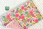 Handcrafted Pink Flannel Flowers Caterpillars & Pink Minky Baby Burp Cloth