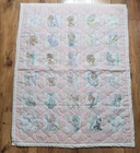 Vintage Baby Toddler Quilt Blanket W/yellow & Green Puppy Kitty Duck Turtle+