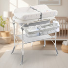 Vevor Foldable Baby Changing Diaper Station With Side Basket & Wheels Light Gray