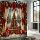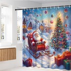 Santa Sleigh Shower Curtain Christmas Tree Snowy Winter Holiday Bathroom Decor