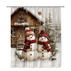 Rustic Snowman Couple Christmas Shower Curtain With Cabin Winter Holiday Decor