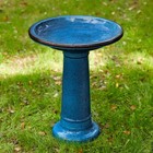 Glitzhome 21.5"h Cobalt Blue Faux Ceramic Tall Pedestal Platform Feeder Birdbath