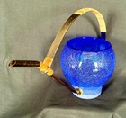 Amici Blown Art Glass Watering Can Copper Spout Rattan Wrapped Handle Blue Glass