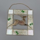 Vintage Painted Glass Christmas Jumping Deer Hanging Window 8"x8" Gold