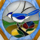 Stained Glass Bluejay Handmade Octagon Suncatcher Beautiful