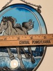 Vtg Rare Blue Equine Stained Glass Suncatcher – Galloping Horse Unique Colorway