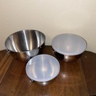 Vtg Revere Ware Stainless Steel 3 Mixing Bowls Lids Nesting Ring Handles Korea