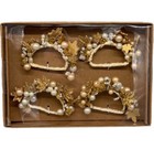 Gold Napkin Rings Set Of 6 Clear Bead Elegant Dinning Table Decor 2.5” New