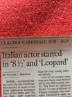 Obituary 1938 - 2025 Claudia Cardinale 8 1/2 Leopard Once Upon Time In The West