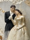 9" Vintage Chalkware 40's-50s Bride & Groom Wedding Cake Topper