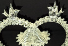 Vtg 1973 Blown Glass Heart W/ Bells & Love Birds Doves Lace Wedding Cake Topper