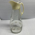 Vintage 1970’s Log Cabin Glass Maple Syrup Dispenser Pitcher Gold Eagle Motif