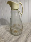 Vintage Mcm Log Cabin Pyrex Glass Syrup Jar Dispenser Gold Star Design 7 1/4"