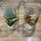 2 Welch's Jelly Jars Tyrannosaurus Brontosaurus Dinosaur Glasses Vintage 1988