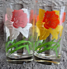 2 Vintage Boscul Peanut Butter Glass Tumblers 5" Daffodils Beautiful!