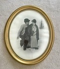 Vintage Large Oval Frame Couple In Love Photo Portrait Glass Wood Gold Gilt 23x1