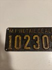 1942 New Jersey M.f. Retail Dealer License Plate Tag Motor Fuel Nice Color 8”