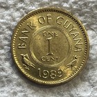 1989 Guyana 1 Cent Coin Stylized Victoria Regia Flowers Plant Wildlife