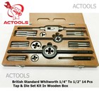 British Standard Whitworth 1/4" To 1/2” Tap And Die Set Kit 14 Pcs Actools Usa