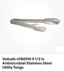 Vollrath 4780910 9.5” Antimicrobial Stainless Steel Tongs Brand New