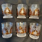 Set 6 Bohemian Amber Cut To Clear Crystal Whiskey Glasses Floral Etched Vintage