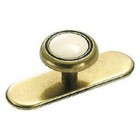 6 Brass Backplate & Porcelain Knob Cabinet Drawer Pulls 1970s Sz 5” Vintage