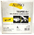 25 Pack Of All Pro A-plus 100% Cotton Painter’s Wipers 18” X 18” Super Absorbent
