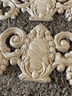 Unpainted Wood Carved Furniture Onlay, Wooden Applique, Decor 10”x5.75” Set Of 2