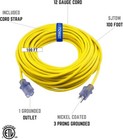 Clear Power 100ft Extension Cord 12/3 Sjtow Yellow Oil Resistant Outdoor Cp99001
