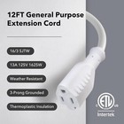 Bn-link 9-35 Ft Indoor/outdoor Extension Cord 16/3 Sjtw, White, 3-prong Grounded