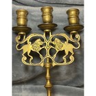 Vintage Brass Lion Candelabra Triple Candle Holder Table Decor 13" Tall