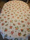 Christmas Tablecloth Poinsettia Dogwood Acorns Red Border 50"x72" Mcm
