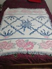Vtg Throw Blanket Woven Tapestry Fringe Pink Blue Flower Bow 48" X 54" Cottage