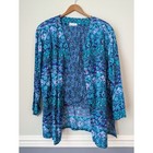 Vtg Coastal Grandma 2 Piece Set Blouse Trousers Womens Large Blue Breezy Coastal