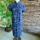 Clio Vintage Blue Floral 100% Linen Asian Style Skirt Outfit Small Petite