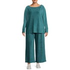 Terra & Sky Women's Plus Size Wide Leg Ribbed Velour 2-piece Set Astro Teal Blue